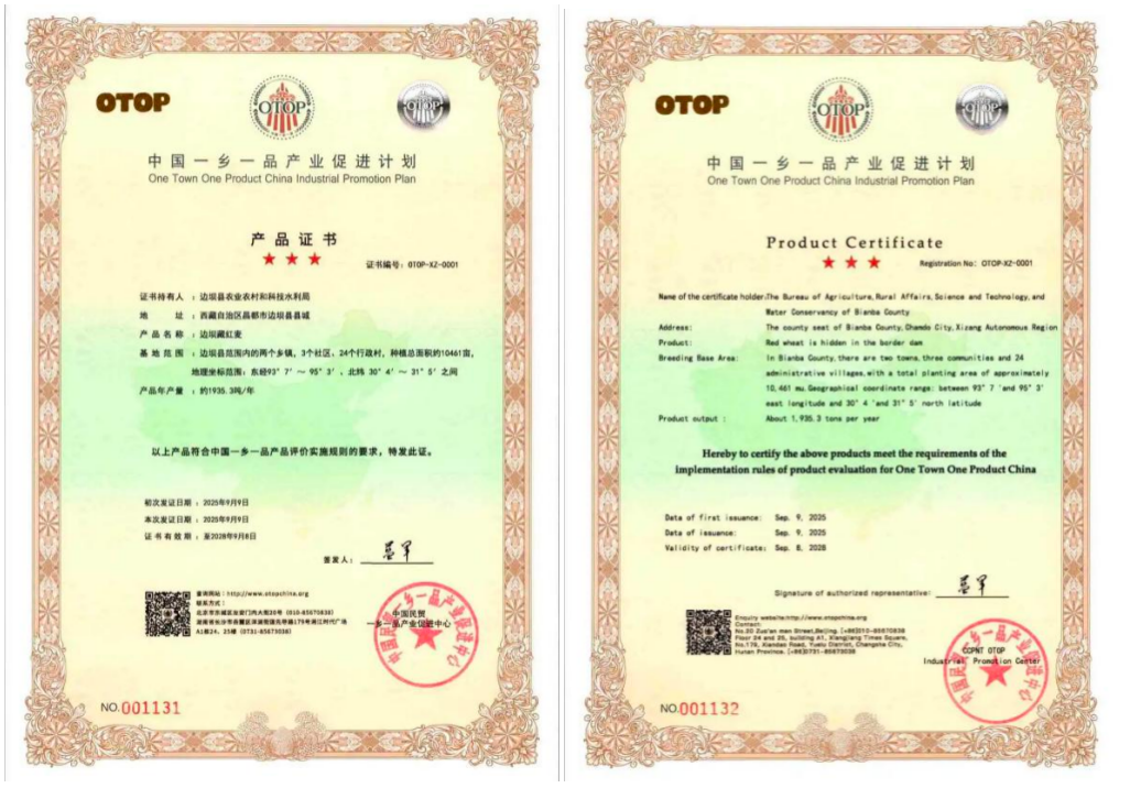边坝藏红麦产品通过中国一乡一品评审